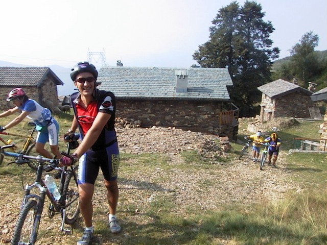 | Mario arriva a Monterecchio, simpatico alpeggio... | ...ed una foto di gruppo è doverosa. |