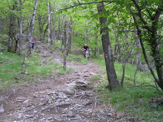 | ...un lungo tratto all'aperto con parecchi gradoni... | ...poi di nuovo nel bosco con tratti scorrevoli... |