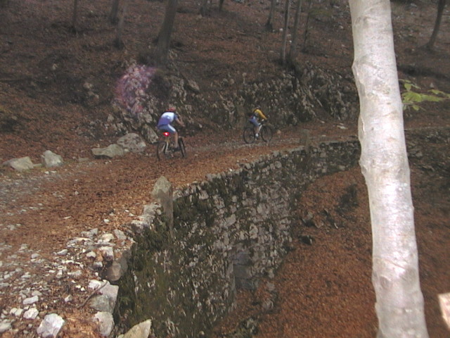 | ...si continua a salire avvolti dal bosco... | ...Ivan, ogni tanto fa le sue esibizioni... |