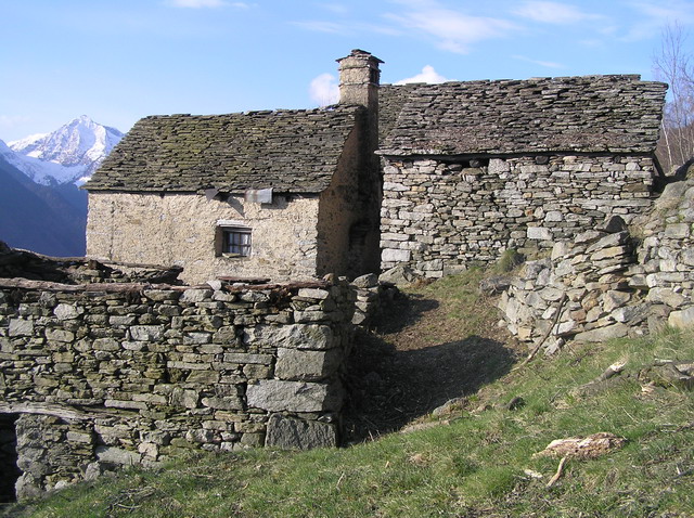 | ...e con una breve salita siamo all'Alpe La Piana (1485 m) | ...l'alpe è molto bella ed assolata peccato che ormai è abbandonata e le baite sono ridotte male... |