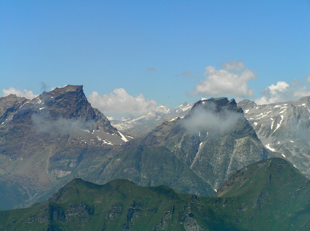 | ...i sentieri sono solo tracce di capre ... | ...durante la pausa ammiriamo il panorama ...la Rossa, il Crampiolo...ecc. |