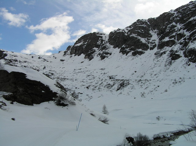 | ...lasciamo Riale che sonnecchia ancora... | ...ci alziamo di quota e la neve è dura e compatta |