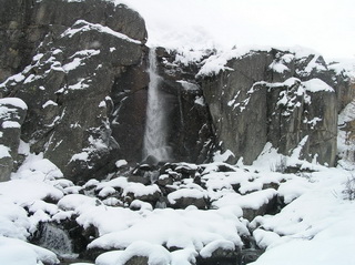 | ...sembra di vivere in una fiaba... | ....gli unici rumori sono la cascata e le nostre ciaspole sulla neve... |