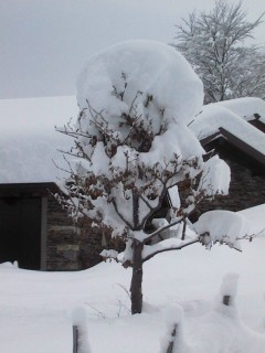 | ...perfino i piccoli faggi sopportano un gran peso di neve... | ...laggiù il Lago Maggiore appena si intravede tra nebbia e nevischio... |