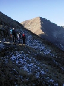 | Lasciata l'auto ad Archia, ci avviciniamo al Passo Folungo... | ...ed iniziamo la salita...parecchi gruppi sono già davanti a noi |