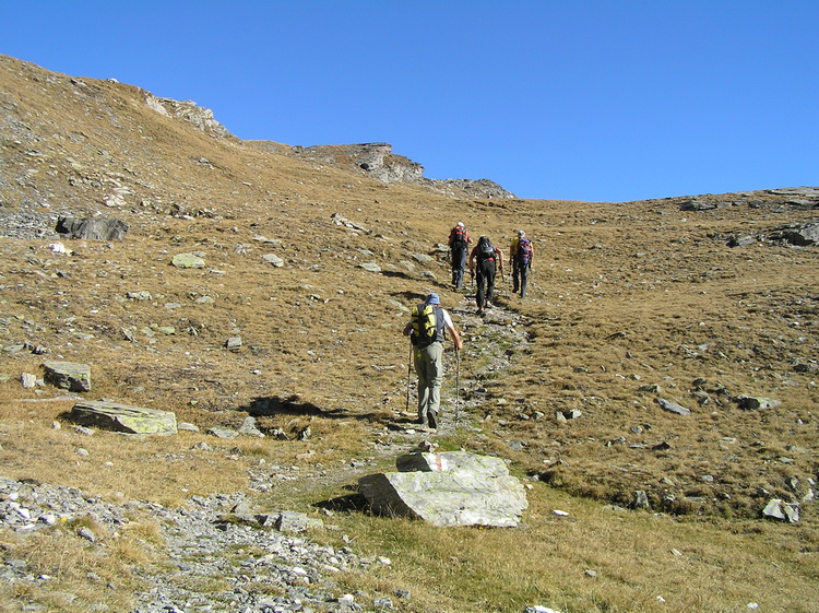| ...e dietro di noi c'è già un bel panorama... | ...camminare al sole è tutta un'altra cosa... |