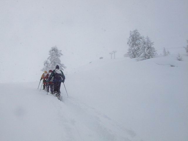 | Lasciamo l'auto al posteggio di fronte agli impianti di Rothwald... | e cominciamo a salire nonostante la nevicata in corso |