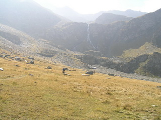 | ...la cascata dal basso... | ...facciamo il lungo pratone... |