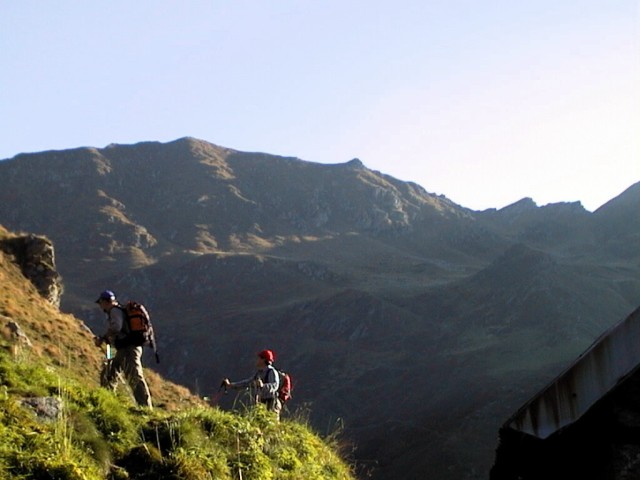 | Seguendo le indicazioni, saliamo all'Alpe Fornale di sotto (1564m)... | ...da cui osserviamo la bocchetta dell'Usciolo ancora in ombra... |