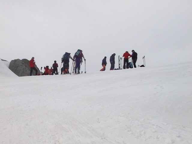 | ...e sul Passo molte persone stanno togliendo le pelli per scendere... | ...al Passo del Lucendro dove arriviamo anche noi e ci rifocilliamo. |