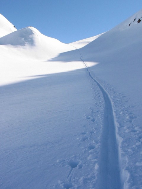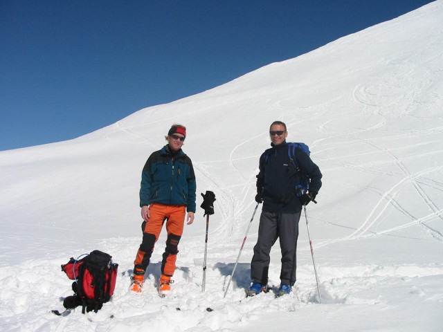 | Dal Rifugio Cristallina arrivano due Amici, Marco e Pirmin...bravi! | ...e seguendo le loro scie, anche noi decidiamo di scendere... |