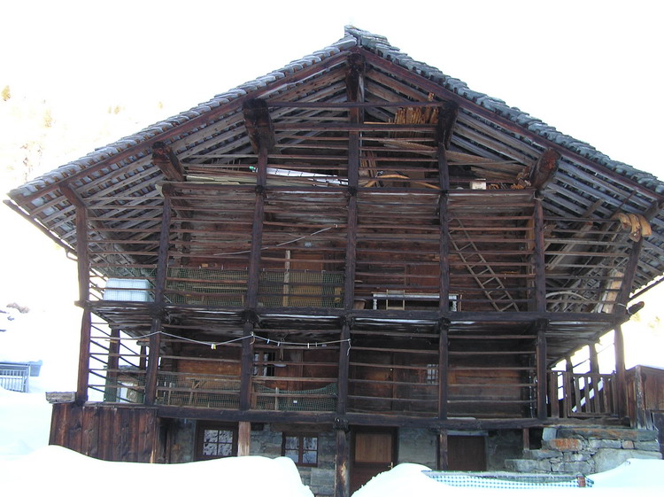 | ...notevoli le case walser... | ...ed una grossa fontana scavata nella pietra... |