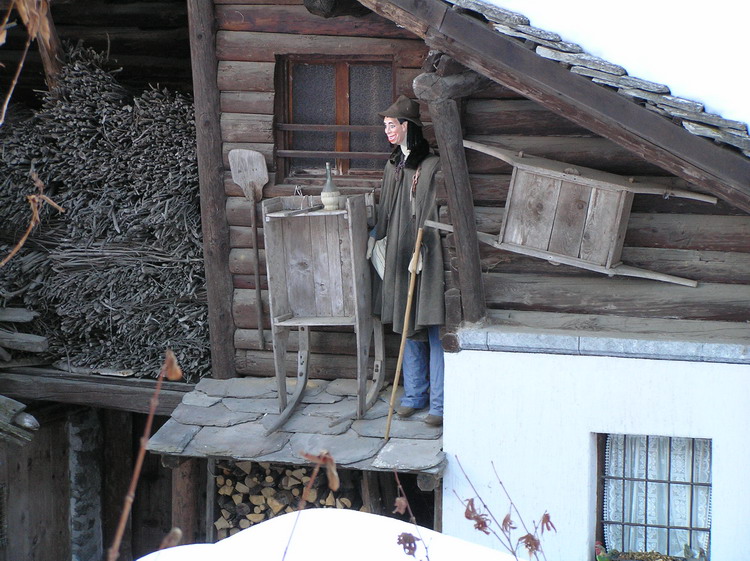 | ...ritorniamo nel bosco... | ...e rientriamo in Alagna dove quà e là ci sono personaggi curiosi... |